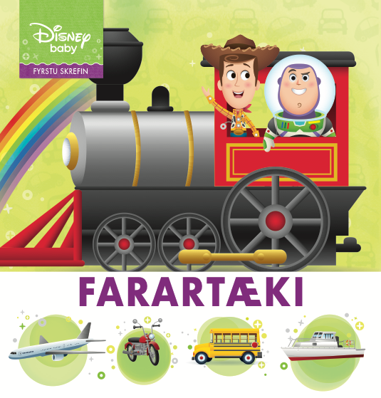 Þyrla, lögreglubíll, þríhjól, skíði, reiðhjól, bátur, hjólbörur. Lærðu um allskonar farartæki með uppáhalds Disney-persónunum þínum.