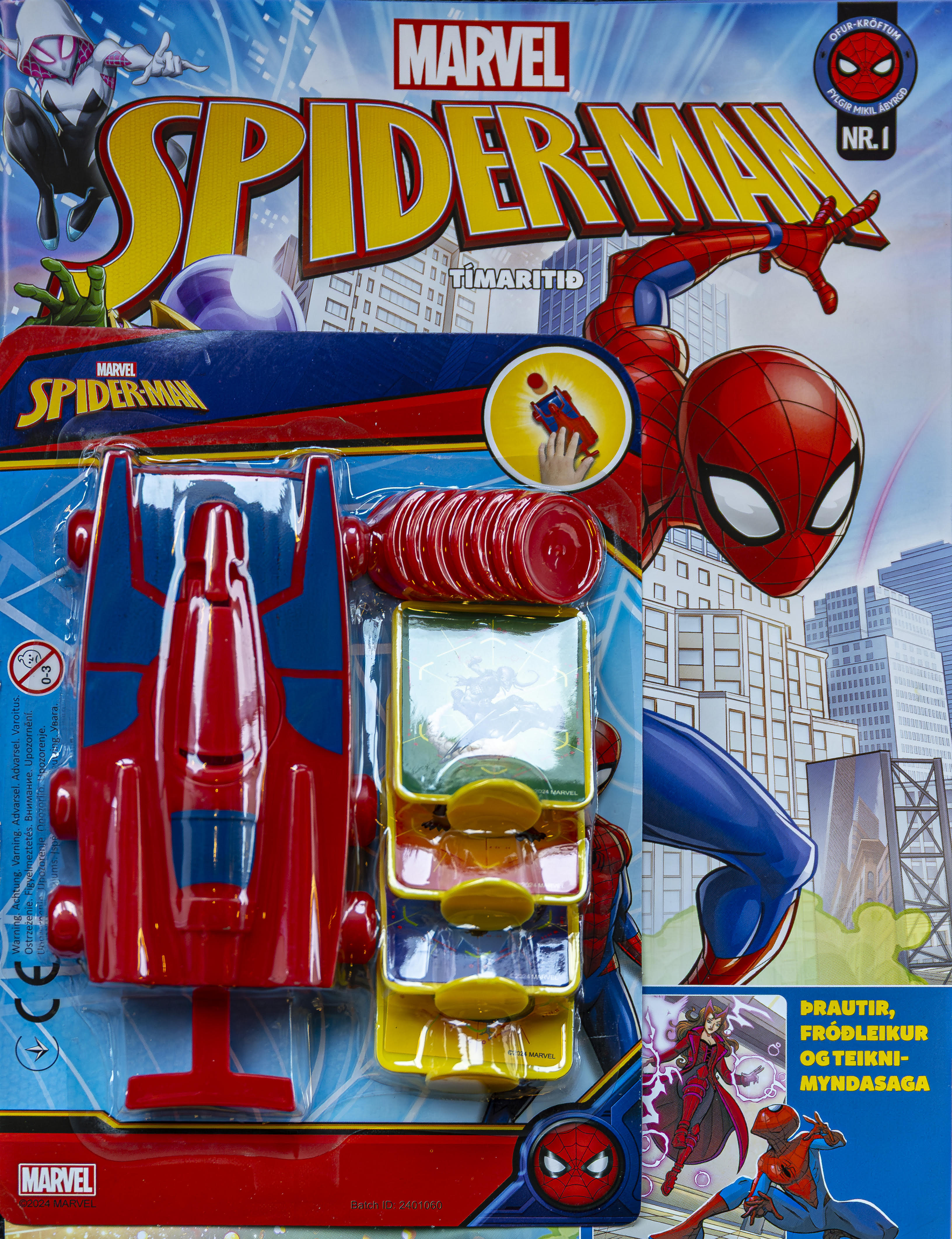 - Spennandi Spiderman tímarit með myndasögum, leikjum, þrautum og fréttium. Skemmtilegt Spiderman dót fylgir með!
