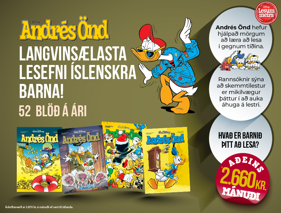 Lágmarks binditími áskriftar er 5 mánuðir, Andrésblaðinu er dreift alla þriðjudaga.